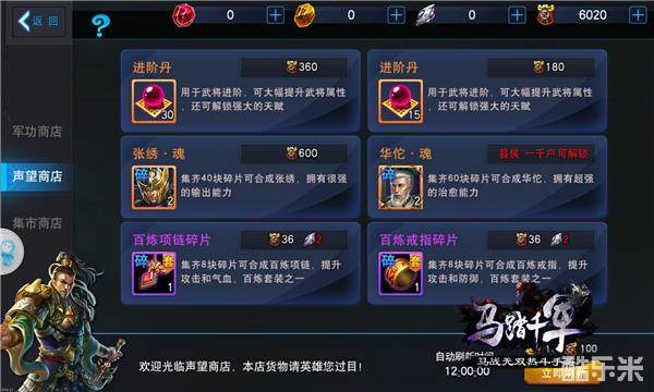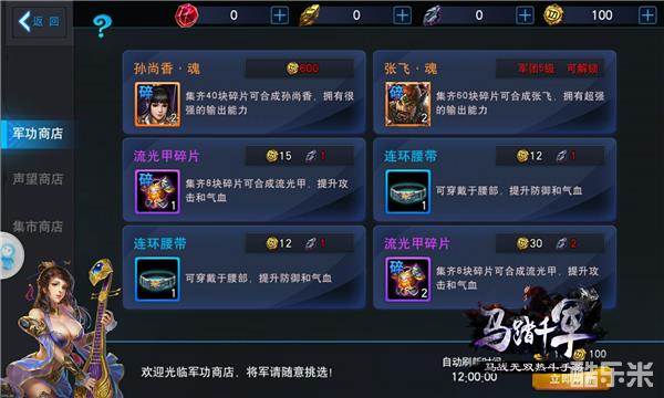 当英雄们拥有大量的声望和军功时,声望商店和军功商店便成为了英雄们的经常光顾之地。极品装备碎片、武将魂魄、进阶丹等道具奖励,只要你有足够声望和军功就能兑换。