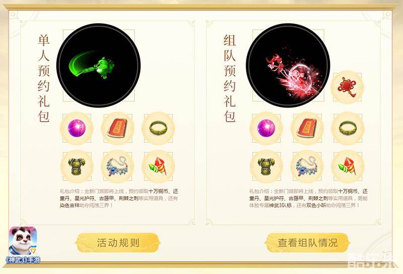 参与单人预约时,少侠们还可以生成邀请码,并将邀请码或者页面分享给好友,邀请好友一起组队预约、赢取内含还童丹、铜币、宠物经验心得、星光护符、强力宠物装备及专属神武3队标体验券、双色小昕等丰厚奖励的组队预约礼包。需要注意的是,每个手机号只能发起或响应一次预约、每个手机号仅能获取一次预约礼包奖励、每个角色仅能获得一次预约礼包奖励,并且只有当组队够5人时才能领取组队预约礼包,不足5人则只能领取单人预约礼包。