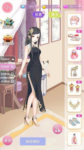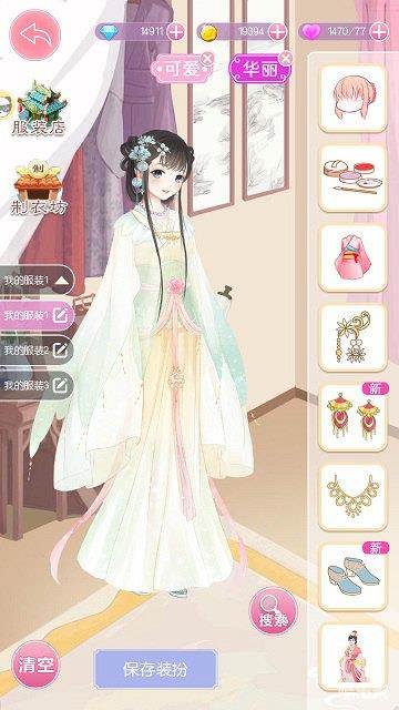 华丽、可爱的服饰搭配。初期服饰搭配推荐蝴蝶髻、樱花傅、娟纱锦绣裙、一生一遇、天青点彩、珍珠美人、青痕沉语。这套服饰属性和星级较低,容易获取。后期服饰搭配推荐细柳扶风、相思浓、紫锦束裙、碧海听笙、红粉佳人、金镶如意、花月紫绸。这套服饰属性和星级较高,较难获取。