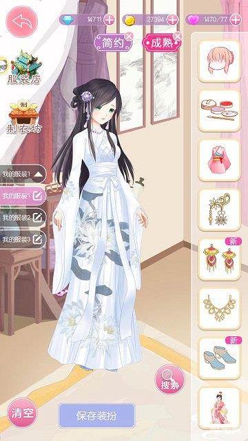 成熟、简约的服饰搭配。初期服饰搭配推荐近香鬟、碧玉妆、素绣棉衣裙、鲛珠泪、月樱铃、珍珠美人、冰晶雪魄。这套服饰属性和星级较低,容易获取。后期服饰搭配推荐垂云髻、淑女妆、粉绫云袖裙、风羽、垂耳珠坠、乐游春、相思扣。这套服饰属性和星级较高,较难获取。
