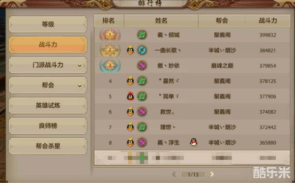 《天龙八部手游》排行榜解析指南