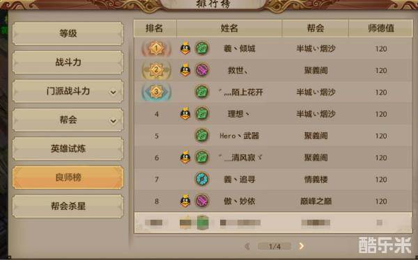 良师榜可以查看到当前服务器师德值最高的前100名玩家哦。