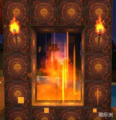 在地心世界。那我们就先做个地心门,需要14个地心门框和6个地心传送门块,摆成下面的样子就OK啦!