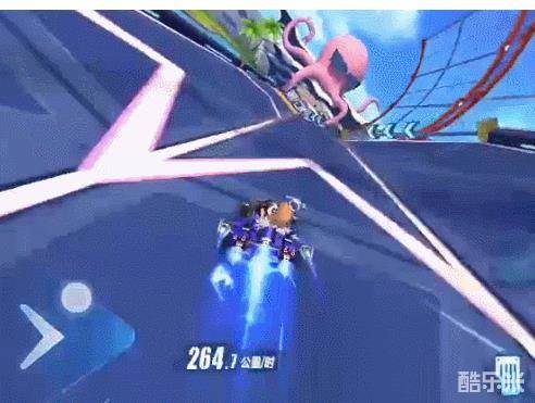 经过珊瑚海域后会从水面冲出,来到反重力车道,车道较为狭窄,这个位置使用龙卷风能有效打击前方玩家。