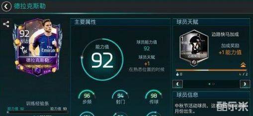 还记得16年欧洲杯对阵克罗地亚的加时绝杀么?还记得今年世界杯对阵伊朗队的那脚天外飞仙般的外脚背射门么?夸雷斯马可能是整个足坛唯一一个只用半只脚踢球的球员,没错,说的就是他的绝技——右脚外脚背。盘带花哨、传射骚气、观赏高,正如这张球员卡,104的传球和双102盘带控球都说明了他是边路的一柄妖刀!