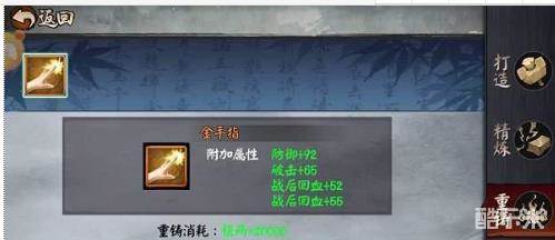重铸:重铸专属武器可以更改专属武器的附加属性,直到你满意的属性为止。每次重铸需要20000银两。