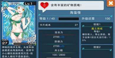 神女控R卡海藻怪最常说的话是“含有丰富的矿物质哦”,今天小编要给大家介绍的就是神女控R卡海藻怪数据图鉴,一起来看吧。