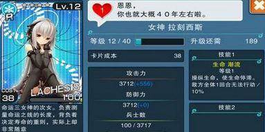 神女控R卡女神拉刻西斯最常说的话是“恩恩,你也就大概40年左右了”,今天小编要给大家介绍的就是神女控R卡女神拉刻西斯数据图鉴,一起来看吧。
