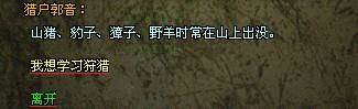 首先,需要学习狩猎技能,隐居延安的猎户郭音(70,31)正好可以教会你这门技术。