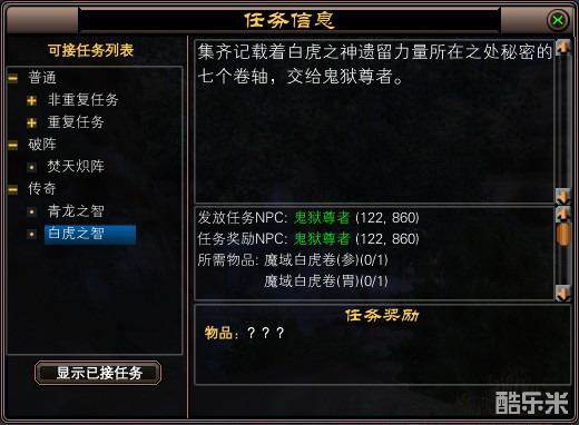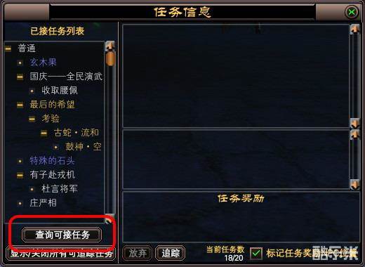 1.点击“查询可接任务”可显示适合本级别段的可接任务列表。