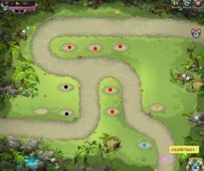 第一轮适当用左下角的增援兵阻挡NPC的前进步伐,没什么难度就可以过关,累积到70金币之后迅速在靠画面上方的黑点处建造一个箭灵守卫。