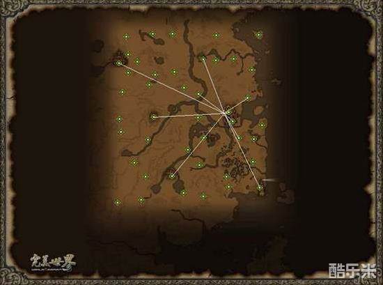 传送点之间的传送线路方面是系统之前就提供好,只有玩家在2个传送记录点记录后,才会显示出来2点之间的连接线。(如下面这张图,线路全开图)