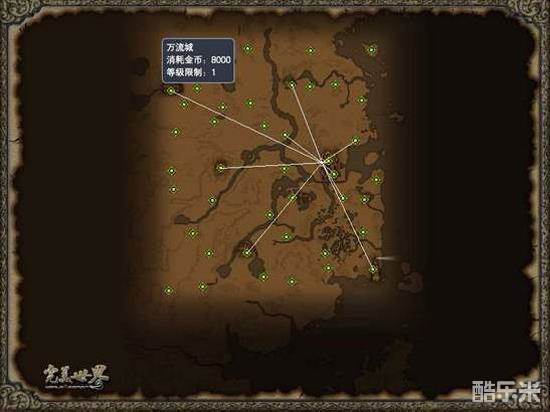 传送的路线是系统设定好的,有些传送点间是不能进行传送的,传送是没有等级限制,而且传送不同的地域需要花费的金钱也不同。(如下图,两个绿色的传送点之间就没有传送路线,显示等级限制和所需金钱)