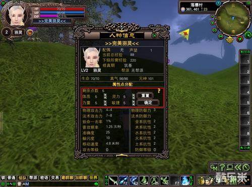 经验值棒若填满时,人物就会往上升一级同时还将获得5点属性点。玩家在人物信息框中点击上下箭头即可将这些属性点分配到体质、灵力、力量、敏捷这四项基本属性上。想要培养出自己心爱的游戏人物,可要好好考虑一下这些属性点应该怎样分配哦!