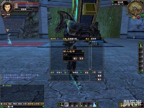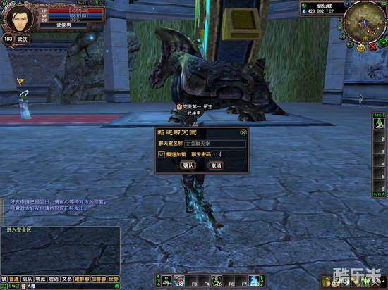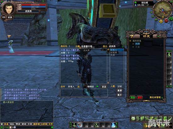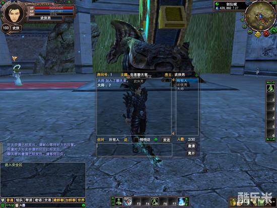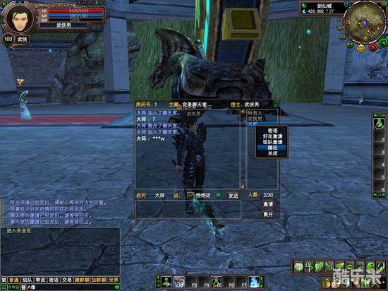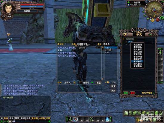 5、您的好友进入聊天室后,系统会自动提示,您可以在聊天室里单独对您的好友进行悄悄话,您可以对聊天室内所有成员进行好友邀请、组队邀请、密语等操作,只有房主可以对其他成员进行踢出操作。