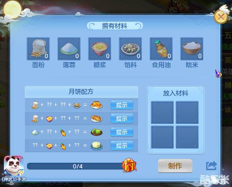 每到中秋节,《神武3》手游都会对广大玩家进行月饼福利大派送,今年也不例外。中秋活动上线后,玩家可以前往长安护国将军处领取“中秋故事”单人任务,通过答题猜谜、小游戏挑战等方式,为中秋庆典筹备努力工作。完成中秋任务还可以获得制作月饼的原材料,大家可以根据“遗失的配方”亲手制作各样各样的美味月饼,体验“千里共婵娟”的美好。
