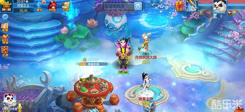 9月21日-9月27日晚19:30-20:00期间,《神武3》手游的帮派宴会将替换为中秋灯会,宴会场景也将更换为更契合中秋主题的广寒宫。活动期间,广寒宫内外张灯结彩,帮派成员皆可前往参与以月饼为主题的帮派宴会——中秋宴会,品尝包括冰皮月饼、水果月饼、五仁月饼、蔬菜月饼、火腿月饼、抹茶月饼在内的十数中节日美食,与帮派好友一起欢度中秋佳节。