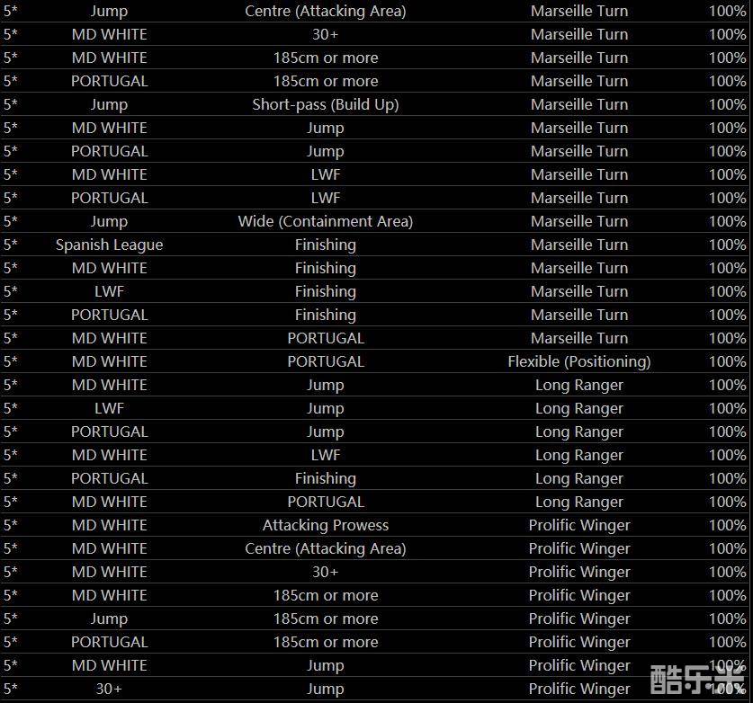 记得在内测阶段已经有玩家在国际服合成C罗了,当时的公式为LWF+跳跃+葡萄牙(全5星球探)。但近几天翻查了下国外合成公式,发现合成顶级球星的公式多到令人发指的地步。所以以此类推只要三个5星球探(一个定律全5星必然是黑卡球员)与你想要的球员有关基本就能合出来。如下图Portugal=葡萄牙、Marseille Turn=马赛回旋,那么葡萄牙+马赛回旋+185就是C罗。大致看了下C罗的公式,100多种吧!所以合成球星不难,难在获得5星球探。再举例梅西公式:巴塞罗那+RWF+灵活、巴塞罗那+左脚+马赛回旋(5星5星)。