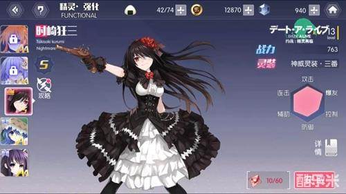 在游戏里,想要更换灵装,要在主界面下方一排中找到精灵选项,点击进入以后找到精灵狂三,然后点击详情,左边一竖排最下面就是灵装选择了。
