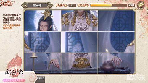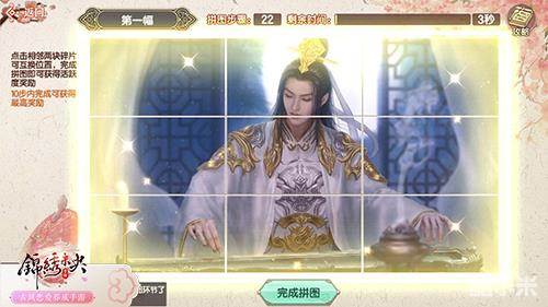 狂放宴会派对,就得让脑壳、身体躁动起来。短短四分钟内,玩家需要在偌大的府邸建筑上寻找神秘画卷。找到画卷后,玩家需要在指定时间内,凭借自己的才智将手中的碎片拼凑出一张完整的锦绣画卷,查看画卷中隐藏的风采。玩家根据画卷画面移动图片完成拼图,点击相邻两块碎片可互换位置,步数越少奖励越多,完成拼图即可获得活跃度奖励。