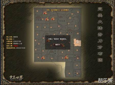 当某帮派对某块领土宣战之后系统提示中将不会显示宣战成功的帮会名称,而只是提示“某帮会已经向XXX地成功宣战。”