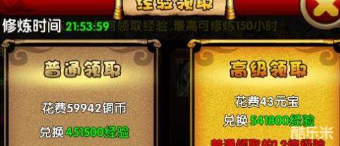 领取经验有两种方式,花费铜币可以领取到24小时之内修炼的经验,超过24小时以外就只能花费元宝获得了。