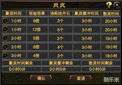 聚灵时间:多倍经验时间,此时间如果有剩余则不能再次选择聚灵套餐,聚灵套餐每天只能选择1次。此时间计算的是游戏在线时间。