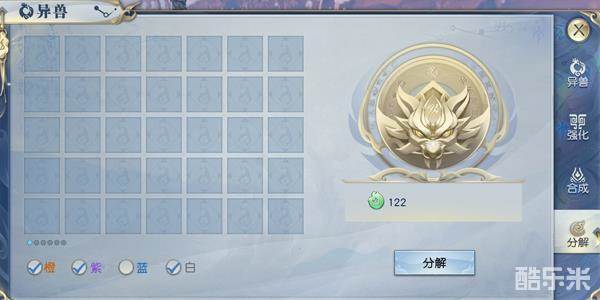 背包内的装备及材料可进行分解,分解为兽元,作为强化异兽装备消耗。不同品质、等级的装备分解获得兽元不同哦。