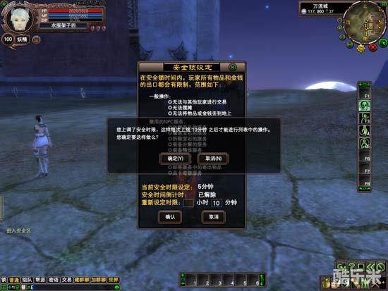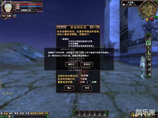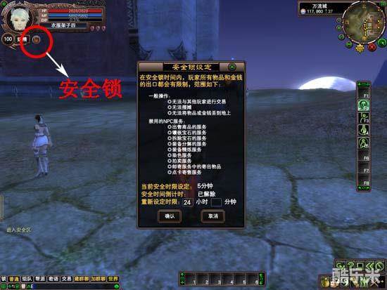 所有玩家上线后都会默认为安全锁模式,玩家可以自行设定安全锁时间限制(有最大时间和最小时间)。但不可能解除安全锁模式。