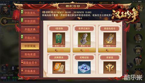 城主们还可前往中秋商城消耗月饼兑换加速令、七星信物、经验书等道具,还有会员点数、高级招募券、武略经验、武略要诀等珍贵道具助城主成就霸业!