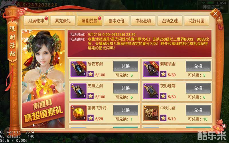 活动说明:收集活动道具“星光闪烁”兑换丰厚大礼!击杀世界首领、首领之家、天魔秘境有几率获得非绑定的星光闪烁!野外和离线挂机也有机会获得绑定的星光闪烁!