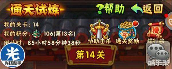 少年三国志通天试练攻略基本原则就是,有直接通关点通关,没有通关就答题(光环助手里有答题器),没答题就点自己(吃道具),没自己就点玩家(吃道具)。
