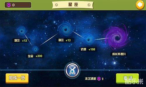 小盒和他的小伙伴们不但有着梦想,还是一群星座迷,至于是什么星座还有待于激活,游戏中把星座加入了成长属性,这样一来,所有星座的激活属性都将不在是梦想。