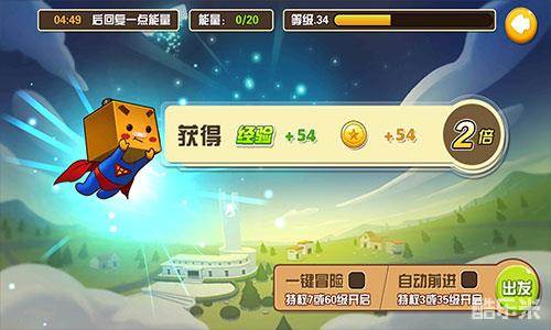 变身超人的张小盒有着更多的梦想,一键冒险中玩家可以根据自身的选择去飞翔,所消耗的能量体会化成经验值和金币,还有成长中的材料。