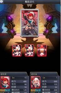 点击魔兽卡片后再点击”进化“按钮,就可以进行进化