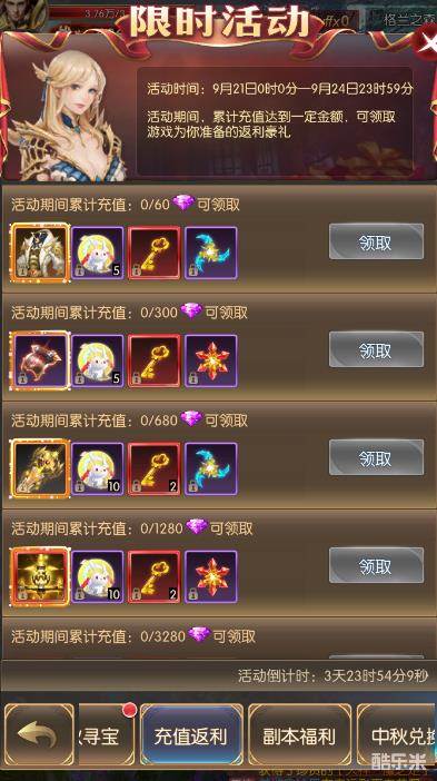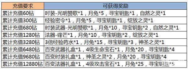 活动规则:在指定时间内充值相应金额可以获得道具奖励