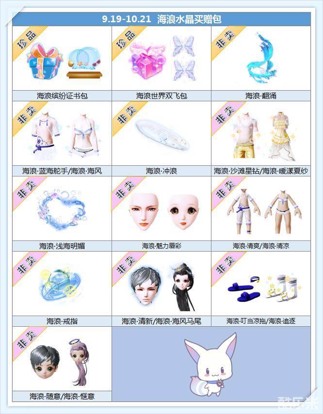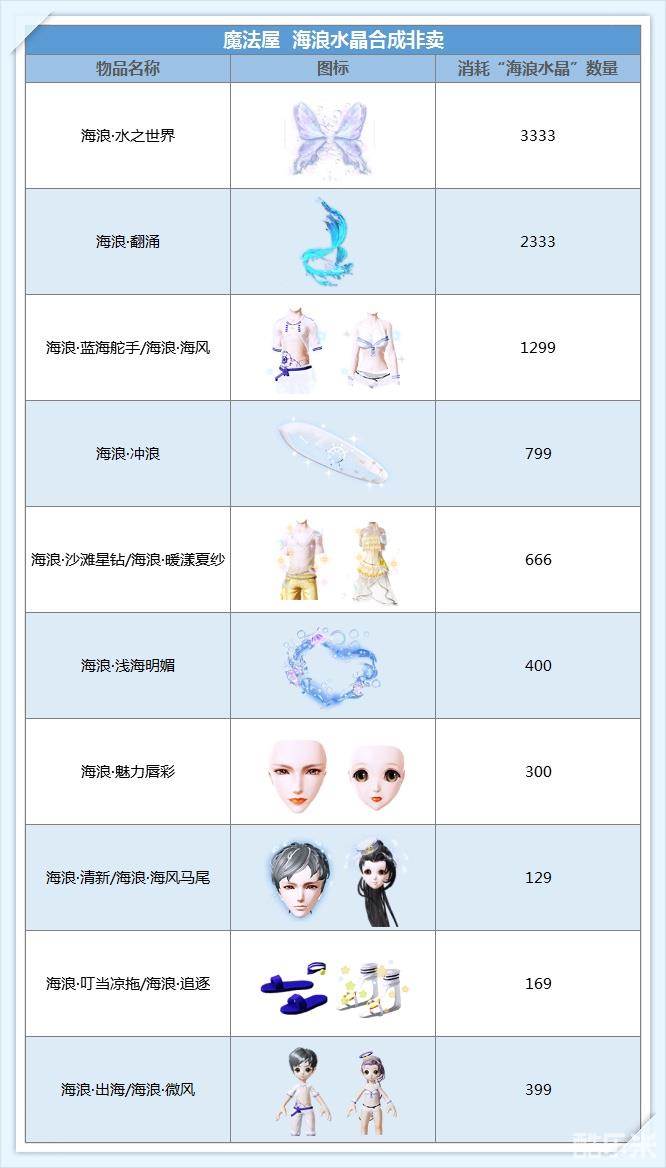 9.19-11.4,海浪水晶可在魔法屋合成!除了性感的海浪系列服饰外,双飞翅膀、动作浮云也可以合成哦!!如果抽不到,那就合成它!还有白皮宝儿哦!