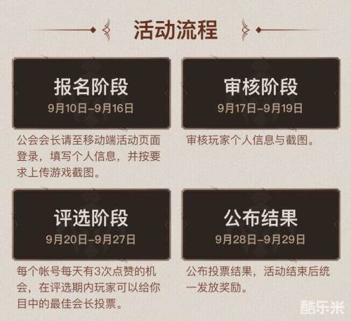 亲爱的冒险家,无论你是已经成功报名参赛的会长,还是公会的一名成员,亦或是向往公会生活的萌新玩家,请一定要珍惜自己的投票权利,为你喜欢的公会和心仪的会长投上宝贵的一票吧!
