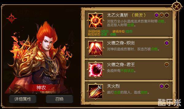 被动技能:火德之身(炽炎)-对神农造成伤害时,攻击方被点燃