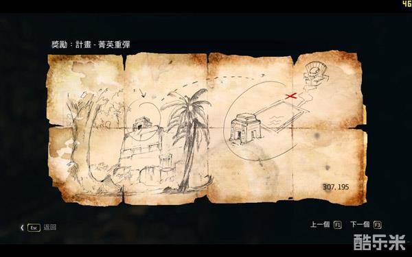 接着,这张藏宝图指向的位置是307,195的坐标,我们马上航行到那里吧。