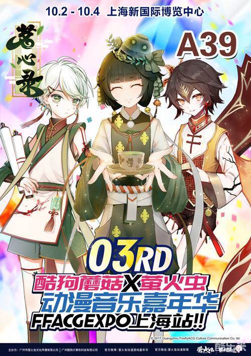 国庆期间,10月2日至4日,位于上海新国际博览中心举办的酷狗蘑菇·萤火虫动漫音乐嘉年华。更多精彩的活动,更多精美的周边,更多帅气的茶灵coser,等待雅士们前来A39展位一探究竟。金秋十月,这个萤火虫漫展,茗心录陪您度过。