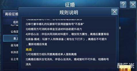 3、结婚双方可以消耗非绑定金币互送材料协助提升战力。