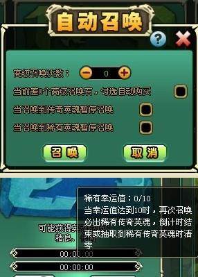 1.当进行高级召唤未能获得传奇英魂时,即累积1点幸运值累积10点幸运值后,下一次抽取必出传奇英魂 从玩家第一次获得幸运值起,幸运值有效期为24小时,如果在此期间获得了传奇英魂,则幸运值清空