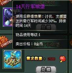 行军城堡是月桂摇摇乐活动中用灯笼兑换的,而灯笼则是通过月饼兑换的,月饼是从活动的获得的道具~