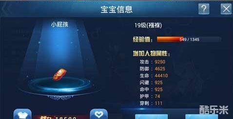 5、宝宝21级开启宝宝时装功能,宝宝可以随时替换已经获得的时装,时装可以给角色增加附属属性加成,时装增加宝宝工作的加成效果。
