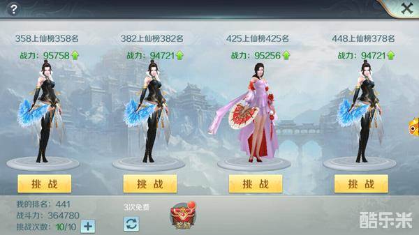 1.玩家每天免费有10次的挑战机会与3次刷新对手的机会。玩家自行选择角色进行1V1挑战。