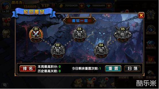 扫荡关卡:每小关魔狱是分开扫荡的,只有整层魔狱通关过方可扫荡