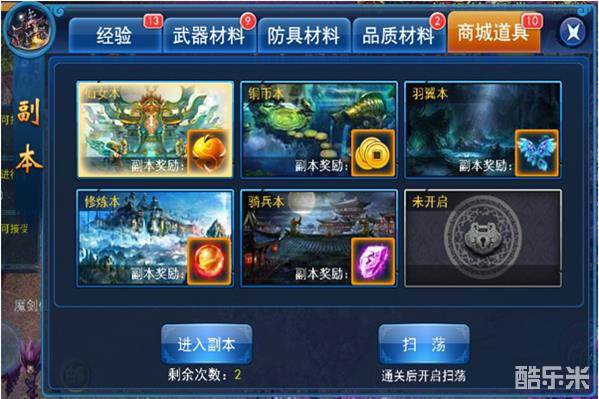 商城道具本分为五个不同类型的关卡,分别产出不同道具。