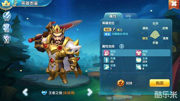 王者之剑:攻击最高的人族英雄,防御也是相当不错的,但是需要用的英雄之证很多,土豪可以考虑入手,普通玩家不建议购买