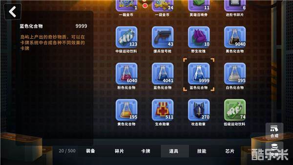 而另一伟大发明,就是化合物合成器,它能把各色化合物合成不同效果的卡牌,只要把化合物根据不同的比例进行混合,即可生成卡牌。而人类目前在卡牌合成这一块的探索只能说冰山一角,目前被发现的卡牌种类仅有20余种,就足以对战局产生深刻影响,可以说掌握了各种卡牌的合成配方,就能掌控整个战局的走向。
